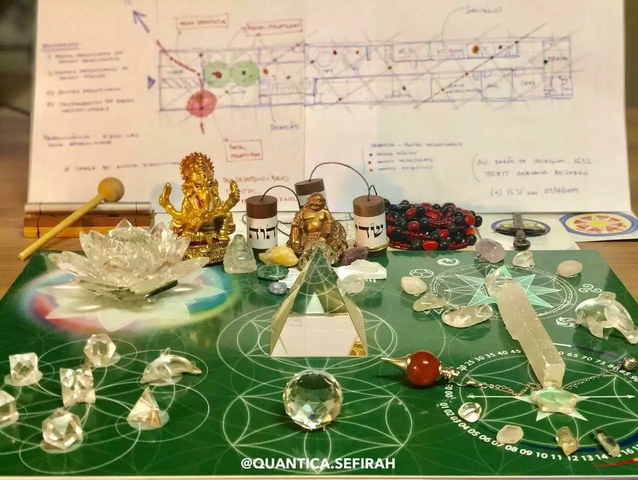 3º) Etapa: Reunião intermediária com duração de 1h00. Baguá® Quântico com ativação das Sefiroth, Sopros Divinos e energia dos cristais, com o objetivo de Reorganização e Elevação da Frequência Vibracional dos setores da vida, o que promoverá todo o alinhamento energético e preparação para outras ferramentas.